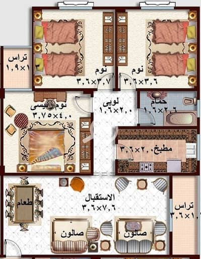 3 غرف و حمام ومطبخ وريسبشن قطعتين وتراس