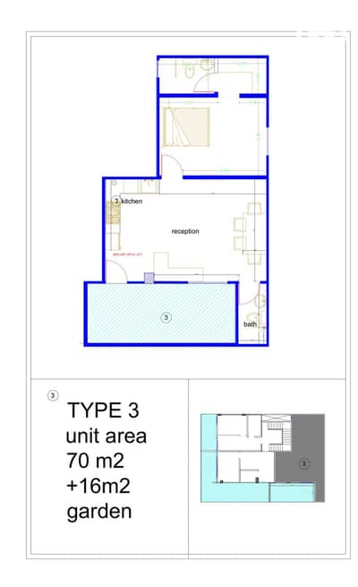 المساحه : ٧٠ م٢ + ٢٥ م٢ جاردن