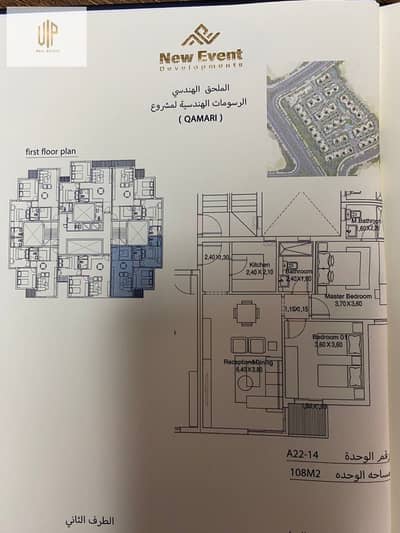 التقسيم: غرفتين نوم + 2 حمام + مطبخ + ريسبشن