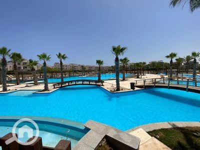 شالية ارضي بحديقة للبيع بقرية امواج الساحل الشمالي على البحيرة