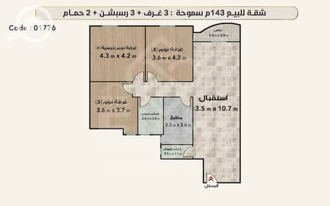 شقة للبيع 143 م سموحة ( ش النصر) - بسعر : 3,650,000 ج كاش - الوكيل / اسلام محمد :