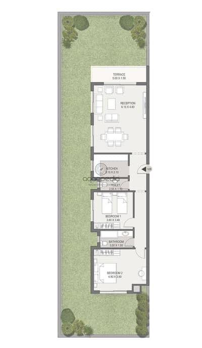 - مساحة الحديقة: ٢٠٢ مترًا مربعًا