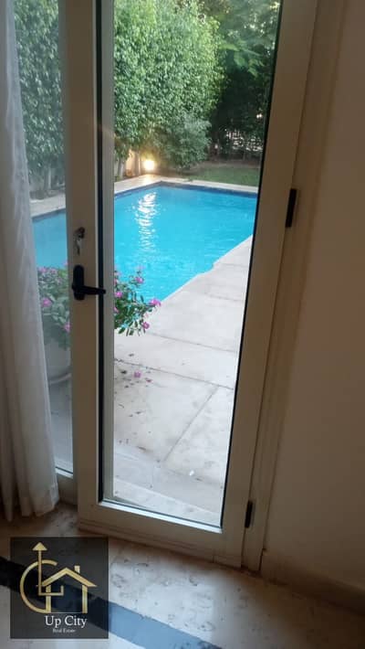 شقه مفروشة بحمام سباحة خاص للايجار في قطامية هايتس كمبوند التجمع الخامس ٣ غرف نوم بحديقة خاصة