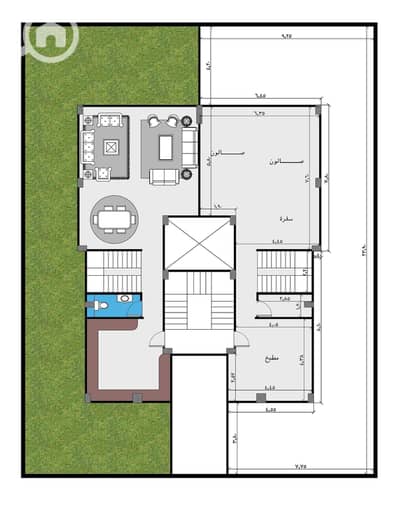 المساحة: 270 متر + حديقة خاصة 110 متر