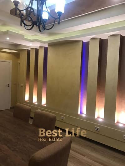 الشقة تقع في الدور الأول بمساحة 150 م²، وتشمل 2 غرف نوم + 2 حمام، تشطيب ألترا سوبر لوكس، وفرش فاخر جاهز للسكن الفوري.