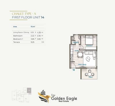 شاليه 72 متر فيو اللجون بحرى فى ساوث ميد CH3