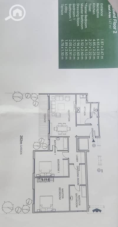 مساحة الحديقة: 202 مترًا مربعًا