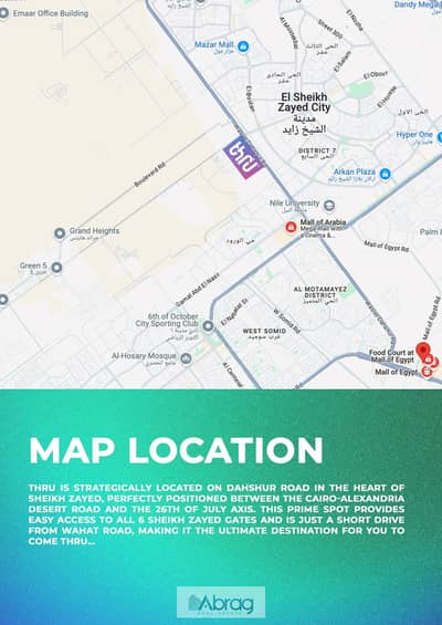 مول تجارى وادارى وطبى على مساحة ٥,٥ فدان على وصلة دهشور مباشر امام مدخل الشيخ زايد ٥ وامام مول City Walk