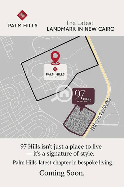أما عن المشروعات المجاورة بك في كمبوند 97 هيلز فإن كمبوند بالم هيلز القاهرة الجديدة على بُعد دقائق.