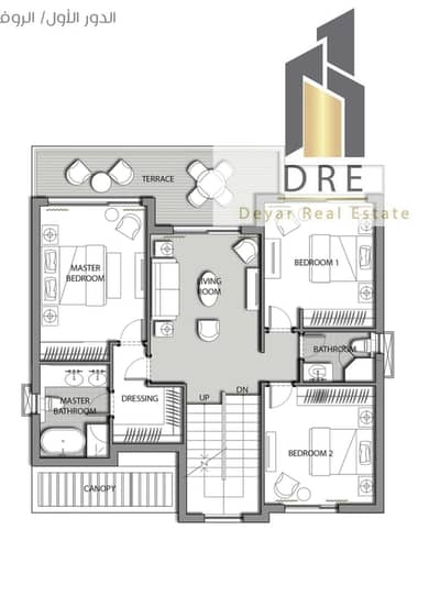 3غرف نوم منهم غرفه ماستر بدرسينج + 3 تواليت + 2 تراس