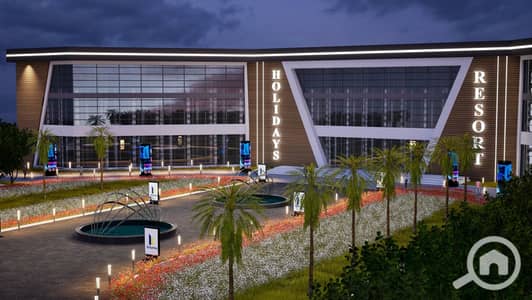 شقه غرفه واحده في مشروع هوليدايز بارك باطلاله جانبيه علي حمام السباحه