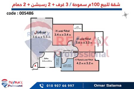 شقة للبيع 100 م سموحة (مدينة اسيد) - 2,800,000 ج كاش - الوكيل / عمر سلامه