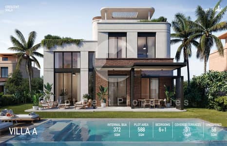طرح جديد فيلا مستقله فخمه اطلاله كامله علي مساحات خضراء واسعه بتقسيمات رائعه للبيع في كريسنت ووك