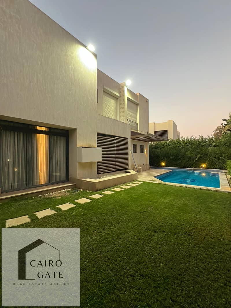 فيلا مفروشة بحمام سباحة للايجار اليومي داخل كمبوند بالشيخ زايد تصلح للعائلات