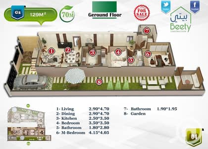 شقة 129م ارضي بجردن 90م بشمال الرحاب خطوات من السوق الشرقي و حديقة الأسرة