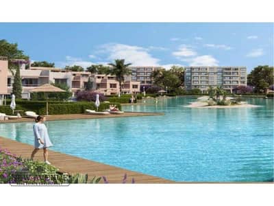 شاليه مباشرة على اللاجون للبيع في هاسيندا ووترز، تشطيب كامل، مساحة المباني ١٠٣ متر، غرفتان نوم، استلام ٢٠٢٨
