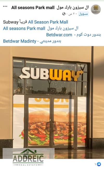 للبيع محل مميز جدًا بموقع استراتيجي من الطراز الأول داخل الاول سيزون بارك