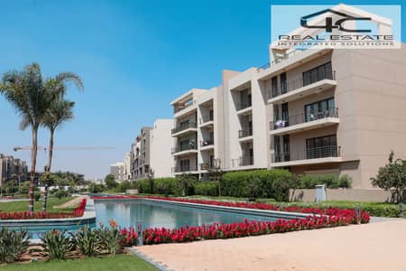 شقة بجاردن للبيع في كمبوند فيفث سكوير نيو كايرو التجمع الخامس برايم لوكيشن متشطبة بالتكيفات فيولاندسكيب استلام فوري