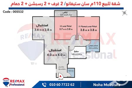 شقة للبيع 110 م سان ستيفانو ( ش عزيز كحيل ) - 3,500,000 ج كاش - الوكيل / نهي مصطفي
