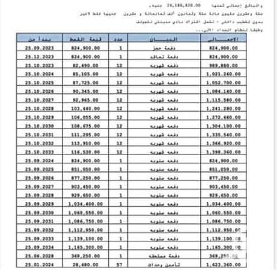 إجمالي سعر الوحدة بدون الوديعة: 26,186,000 جنيه على 11 سنة
