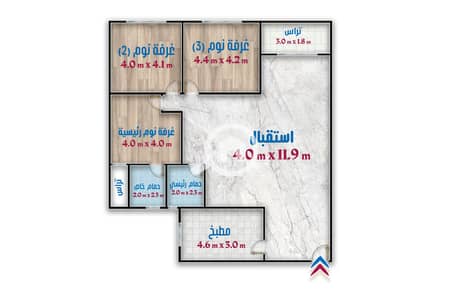 – 3 غرف(منهم غرفة ماستر) ريسبشن 3 قطع 2 حمام