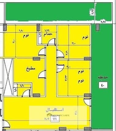 مكونة من 3غرفة نوم و2 حمام ومطبخ وريسبشن وجاردن كبيرة حرف ال