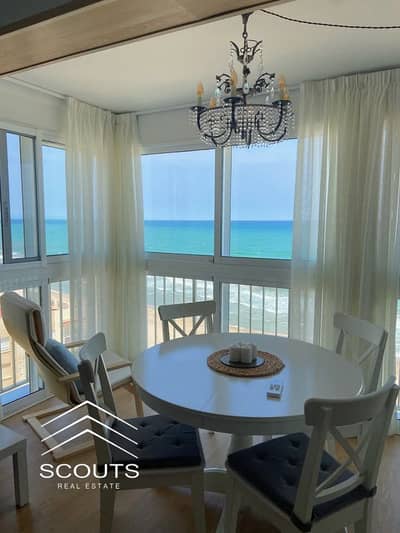 تقسيمه مميزه دور ارضي يحتوي علي غرفه + ريسبشن + كيتشن + حمام + جاردن اوبن فيو علي البحر