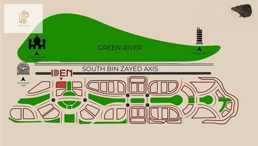 موقع استراتيجي صف أول على محور بن زايد الجنوبي، أمام النهر الأخضر مباشرة.