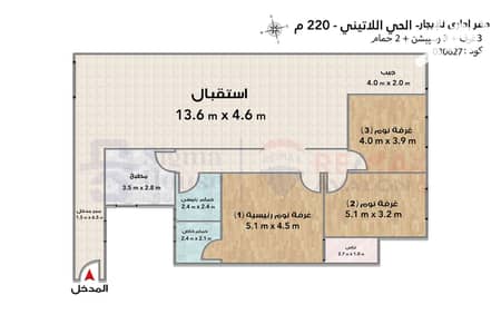 شقة إداري للإيجار 220 م الحي اللاتيني (ش الفراعنة)