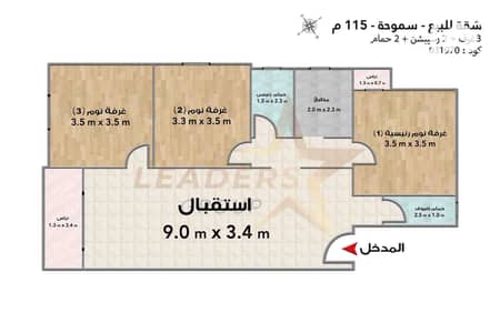 شقة للبيع 115 م سموحه (بالقرب من جرين بلازا) - 3,750,000 ج - الوكيل / اسماء فوزي