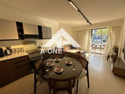شاليه بإطلالة بحرية مميزة في مراسي بمساحة ٦٦م، غرفة نوم واحدة وحمام واحد، جاهز للسكن.