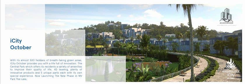دلوقتي فرصتك تمتلك وحدة مميزة داخل Mountain View October، واحد من أرقى وأشهر الكمبوندات السكنية في مدينة 6 أكتوبر، بمساحة 115م² وتشطيب راقٍ، وتصميم يعكس أسلوب حياة فاخر يجمع بين الهدوء والطبيعة والخدمات المتكاملة.
