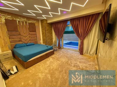 شقة 250متر +240متر حديقة بحمام سباحة خاص تشطيب الترا سوبر لوكس بسعر مميز ولقطه في الحي الثامن الشيخ زايد -Sheikh Zayed