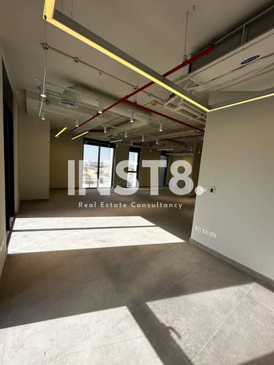 مكتب اداري 130 م متشطب بالكامل واجهة للايجار في هايد بارك التجمع