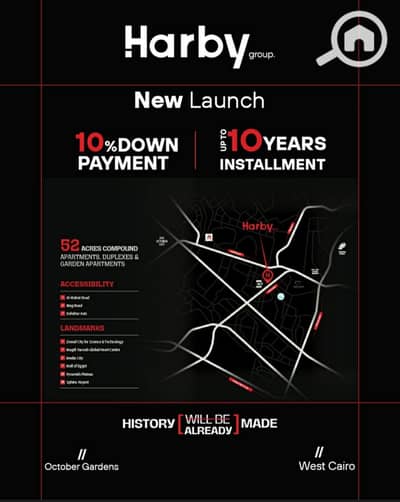 شقه للبيع بمساحه وسعر تحفه جداا في كمبوند Harby Residence في قلب حدائق اكتوبر علي شارع زويل الرئيسي واطول فترة سداد October Gardens
