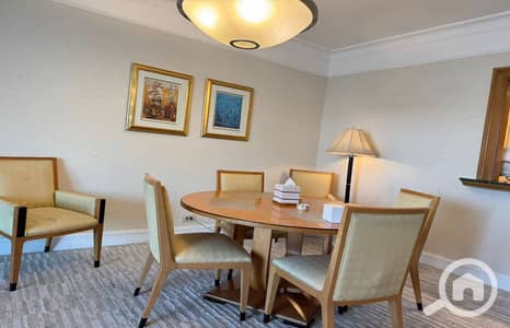 الشقة مفروشة بالكامل وتتمتع بإطلالة مباشرة خلابة على نهر النيل، مع إمكانية الاستفادة الكاملة من خدمات الفندق.