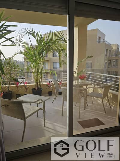 - شرفة مطلة على المساحات الخضراء وحوض السباحة