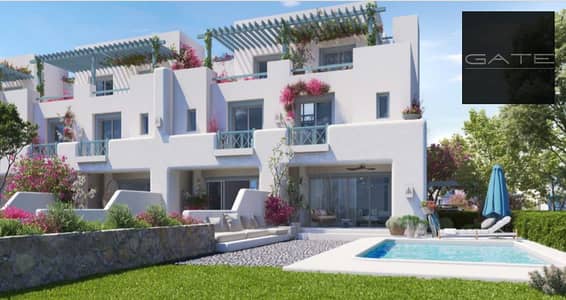بأقل أوفر شاليه للبيع في ماونتن فيو رأس الحكمة – مرحلة إيفيا (Evia Phase) كورنر – بحري – إطلالة مباشرة على حمام السباحة (Direct Pool View)