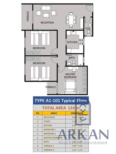 133 متر مربع