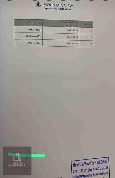 التسليم يوليو 2028 – القسط القادم 23/12/2025 بقيمة 963,243 جنيه