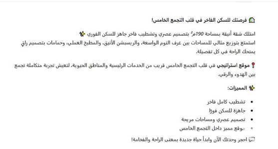 امتلك شقتك المميزة بمساحة 190م² في قلب التجمع الخامس، بتصميم عصري يجمع بين الفخامة والراحة.