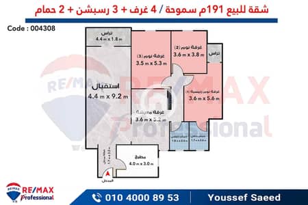 شقة للبيع 191 م سموحه (جراند فيو ) - 11,700,000 ج كاش - الوكيل / يوسف سعيد