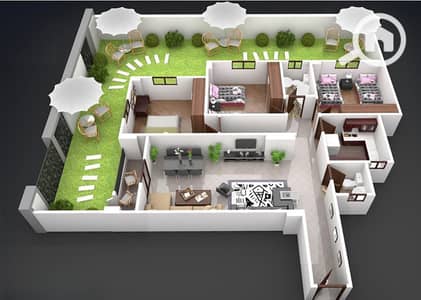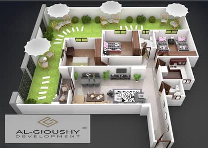 تقسيمة مميزة ريسبشن قطعتين كبار + 3 غرف نوم + 2 حمام + مطبخ