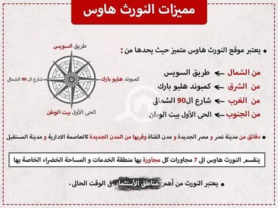 الـمـوقـع :- تقع النورث هاوس بمنطقة شديدة التميز بمدينة القاهرة الجديدة حيث تعتبر امتداد لمنطقة بيت الوطن، على طريق السويس مباشرة وهي المدخل الرئيسي لمنطقه القاهرة الجديدة من اتجاه طريق السويس – حرم الطريق 200م من ناحية الشمال لتسهيل الدخول والخروج من المنطقة.