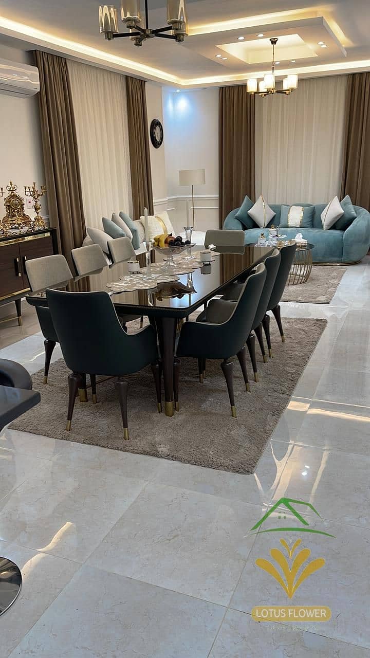 التقسيمة الداخلية : ريسبشن كبير ، 3 غرف نوم منهم غرفة ماستر بدريسين، 3 حمام ، اميريكان كيتشن