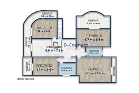 - التقسيم : 6 غرف + 4 ريسيبشن + 5 حمام