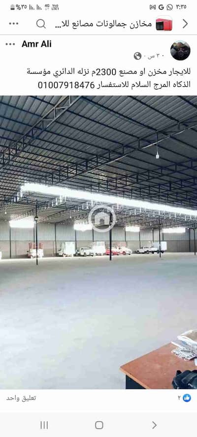 المباني 7300 متر مربع تشمل عنبر أرضي 5100 متر مربع ميزانين 2200 متر مربع وغرف خدمات 26 متر مربع