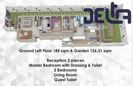 من المالك مباشرة شقة ارضي 185م بحديقة 130م بأميز حي في 6 اكتوبر