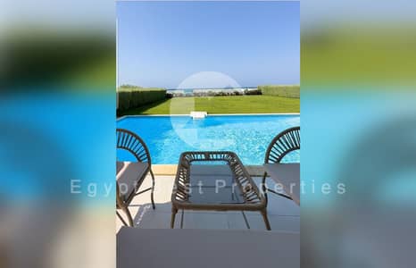 فيلا صف ثاني علي البحر بحمام سباحه خاص ,مفروشة بالكامل + ستائر منزلية كاملة، تكييفات، مطبخ مجهز بالكامل