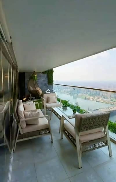 صف اول علي كورنيش المعادى شقه [تشطيب+فرش+ACs] فيو ع النيل مباشرة برج ريف دو نيل - REVE DU NIL Maadi بجوار هيلتون المعادي باعلي عائد من الايجار